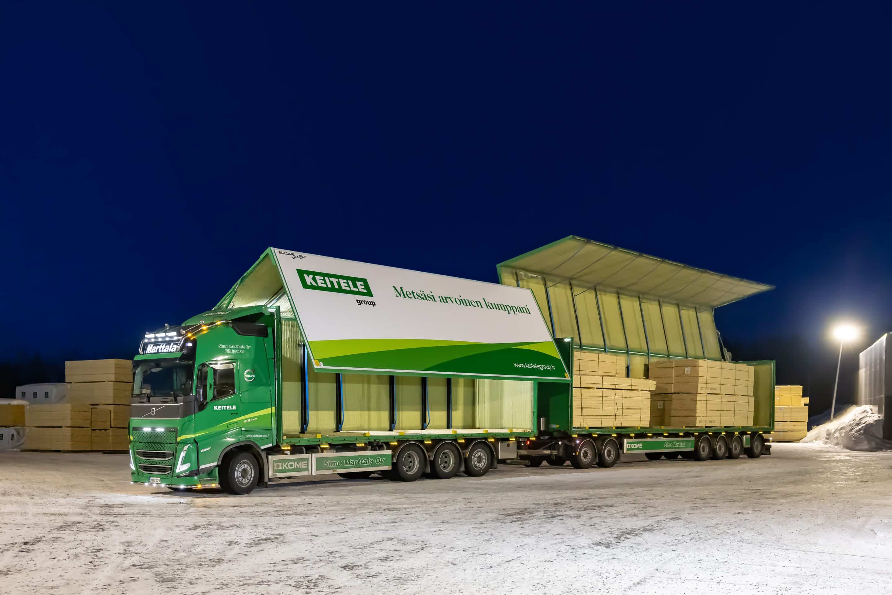 Hydraulinen kuormansidontatolppa nopeuttaa kuorman sitomista. Kun puutavara on lastattu kuormansidontatolpilla varustettuun kuormatilaan, sidontajärjestelmä hoitaa kuorman sitomisen vaadittuun kireyteen kuormatilan sulkemisen jälkeen.